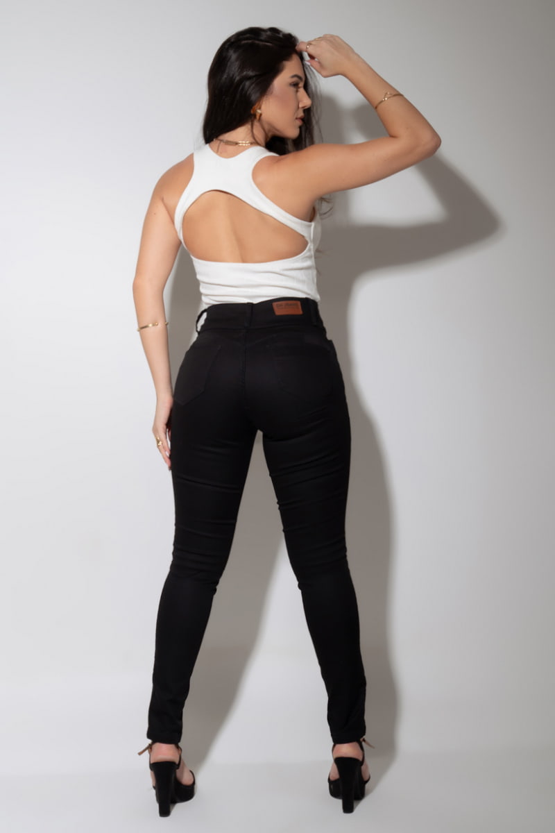 Nossa coleção de calças pretas traz a tecnologia do tingimento duplo nos fios, garantindo que a cor permaneça impecável mesmo após várias lavagens caseiras. Além disso, a modelagem skinny oferece um efeito super modelador, valorizando suas curvas, enquanto o compressor interno no cós reduz medidas e afina a cintura. Estilo, conforto e durabilidade em uma única peça!