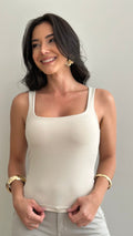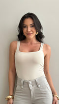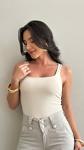 Sem bojo, com alças estilo regata e tecido duplo, garantindo sustentação e acabamento impecável.