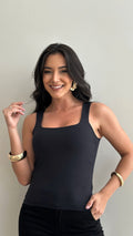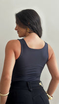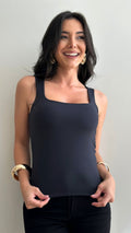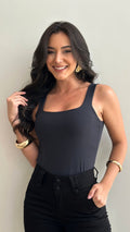 Sem bojo, com alças estilo regata e tecido duplo, garantindo sustentação e acabamento impecável.