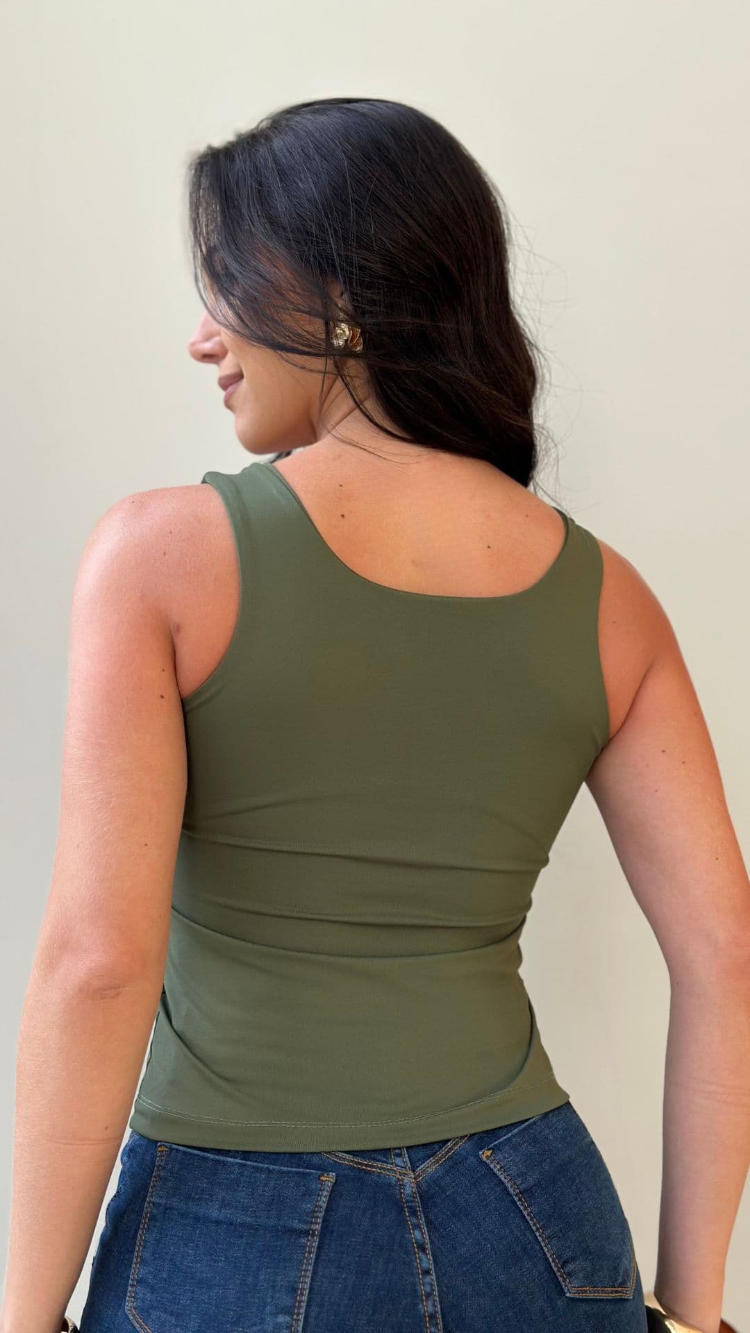Sem bojo, com alças estilo regata e tecido duplo, garantindo sustentação e acabamento impecável.